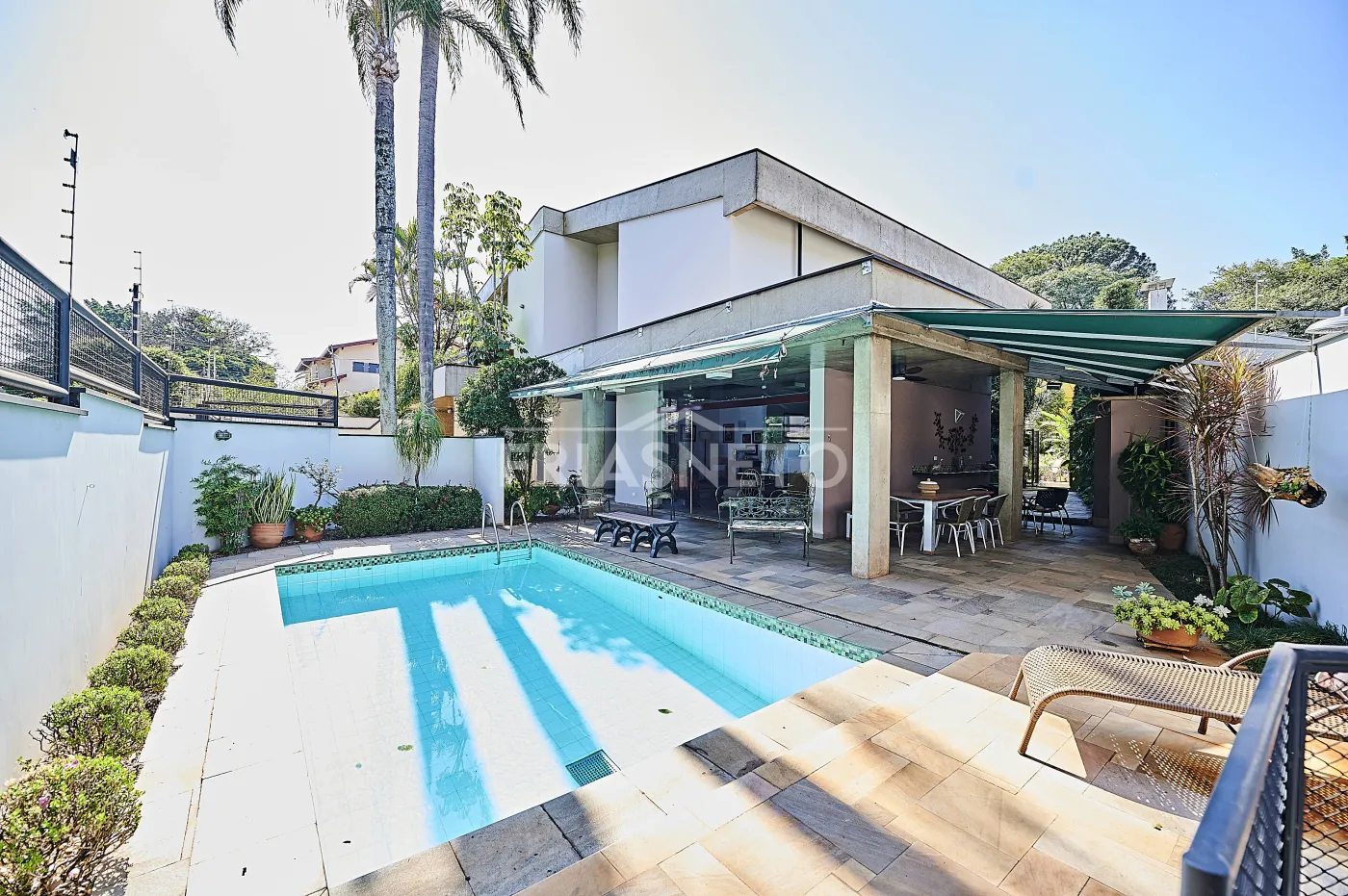 Área gourmet completa, com churrasqueira integrada à piscina