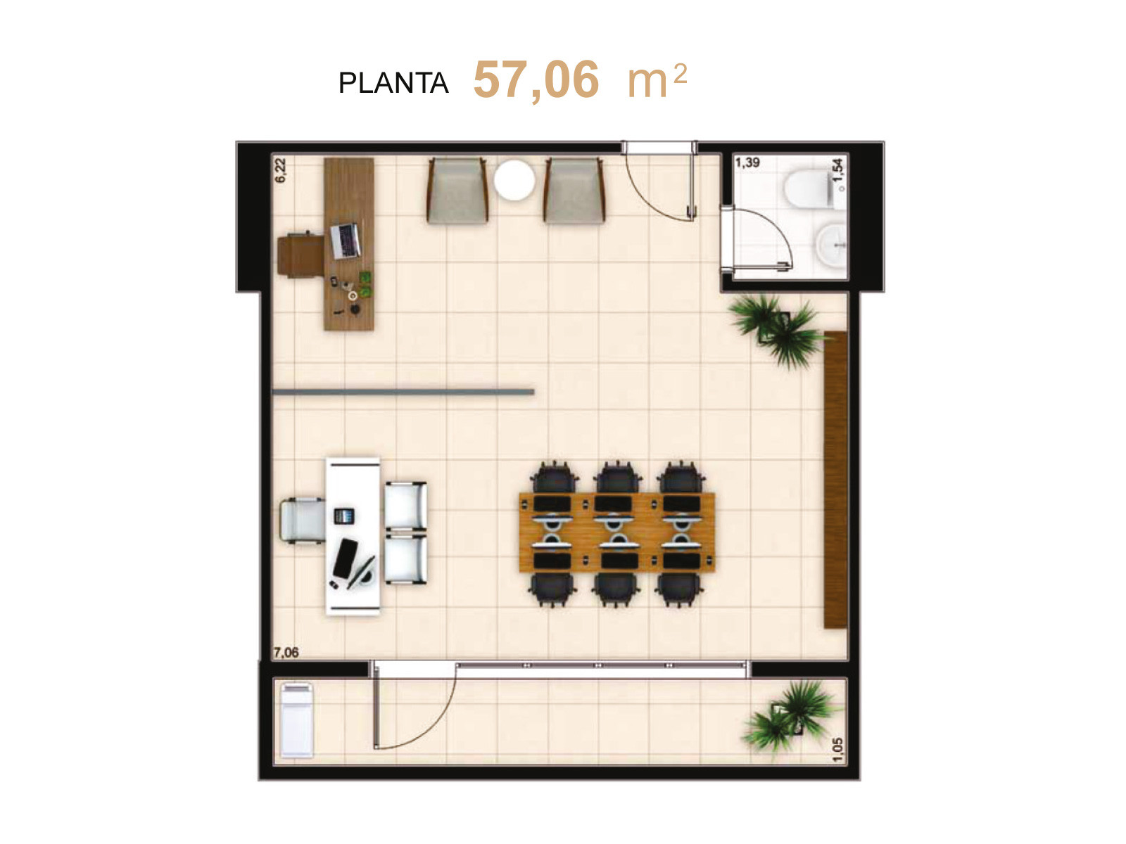 Projetado para atender empresas, profissionais liberais e investidores, o empreendimento oferece salas comerciais com plantas inteligentes e flexíveis, permitindo diferentes configurações de layout para atender às necessidades de cada negócio.